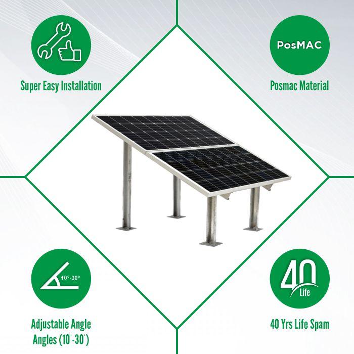 Loom Solar introduces portable solar mounting structure / solar panel stand to fix 2 nos. . A solar panel from 100 ~ 180 of any brand and any make can be installed on a home roof. The portable solar panel stand is made of galvanized iron, the rust proof solar panel stand life is is more than 25 years.